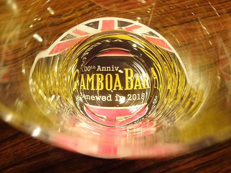 キレイなブルー!シェイクして作る、スカイダイビングという名のカクテルだけど、「サンボア」系列ではあまりシェイク技を使われないそうで、今回もシェイクなしのオリジナルスタイルでのサーブ。