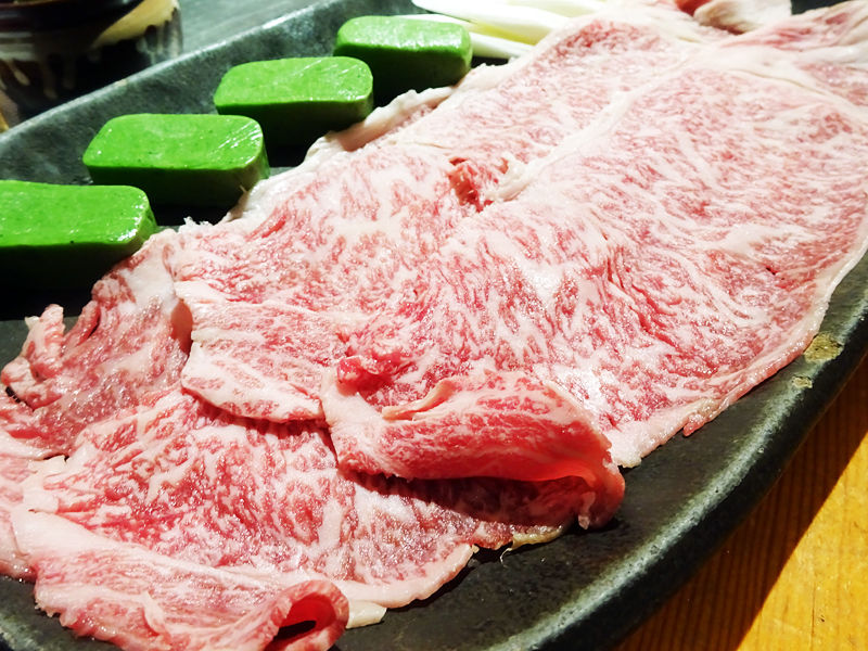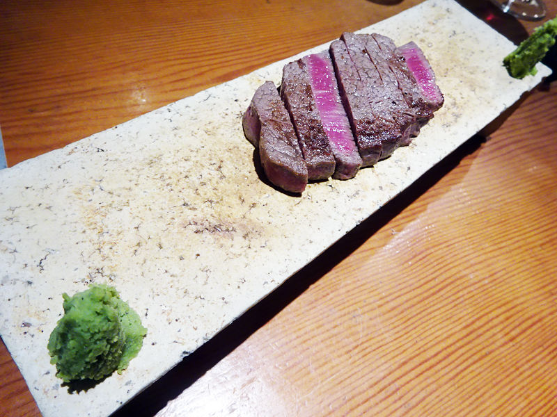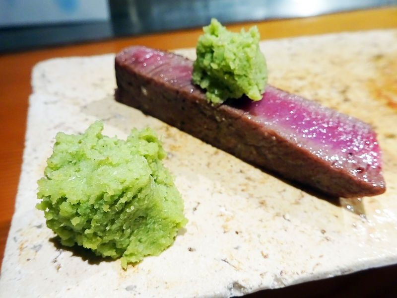 安曇野産のわさびをたっぷり乗せて!爽やかな辛味が肉の甘みを引き立てる!