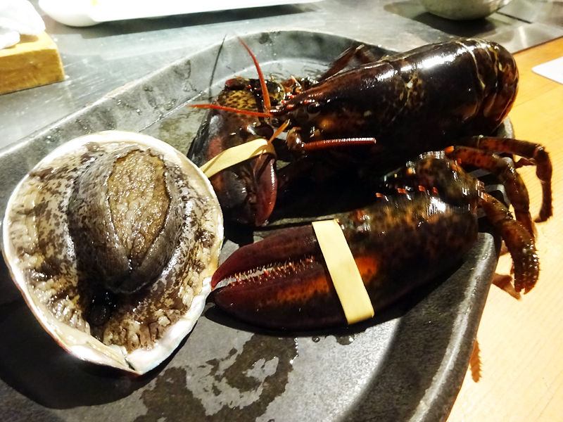 今宵のメイン第1弾は、オマール海老&アワビ!
