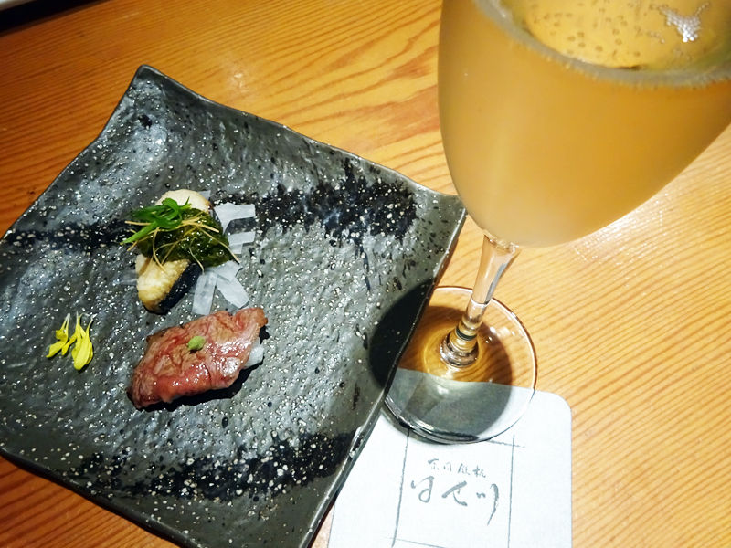 オリジナルの日本酒、はせ川とともに。