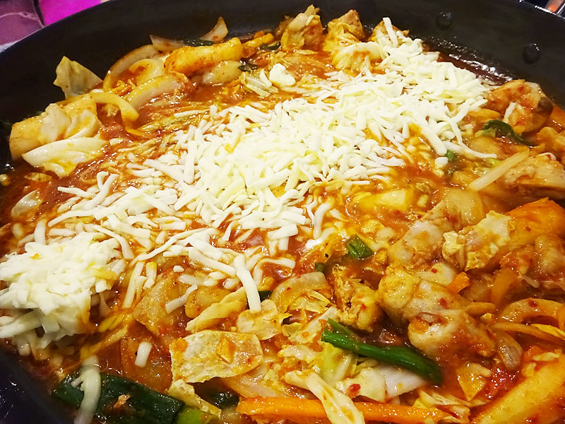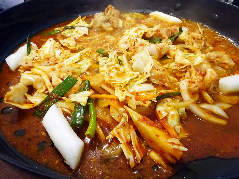 ぶつ切りの鶏肉と野菜に、コチュジャンベースの甘辛味で。