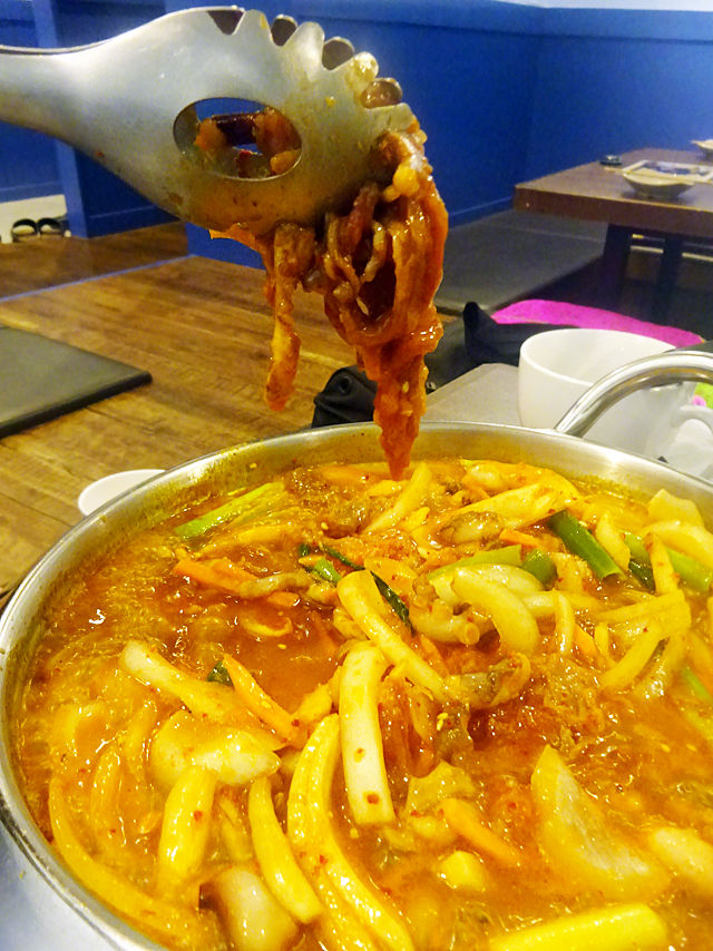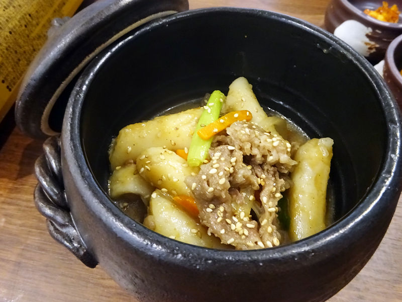 トッポギと言えば甘辛コチュジャンダレで食べることが多いけど、この宮廷風は、醤油ベースの薄甘い感じ、あっさり。野菜や牛の旨味を吸ったもっちりトッポギ、いいね〜辛いのが苦手な人にも◎