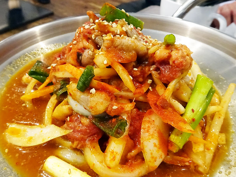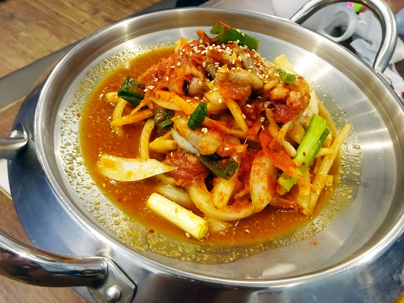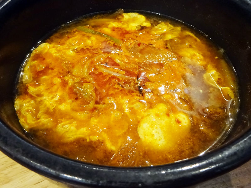 お店のウリ、チゲ(鍋)料理。数種ある中から気になるものを2品チョイスしました。まずはこちら。