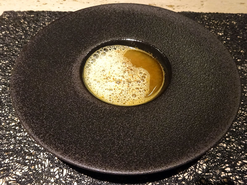 カニ漉しました!な超濃い蟹味!後にふわっと香る香草の泡と、ピマンデスペレットというバスク産唐辛子のピリッとくる辛味が味をしめてくれます。
