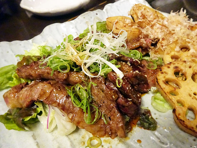 牛ステーキ、蓮根おかか醤油焼き