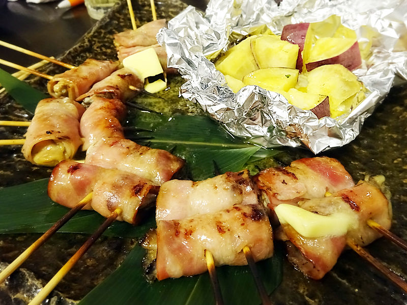 牡蠣のベーコン巻き、さつま芋のホイル焼き