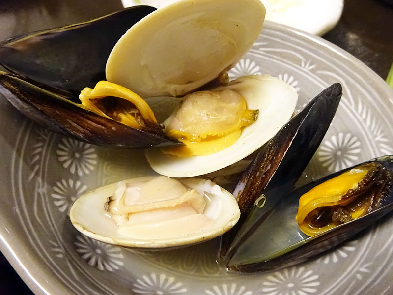 貝賊蒸し(ハマグリ、ムール貝)