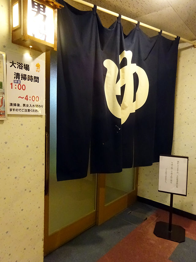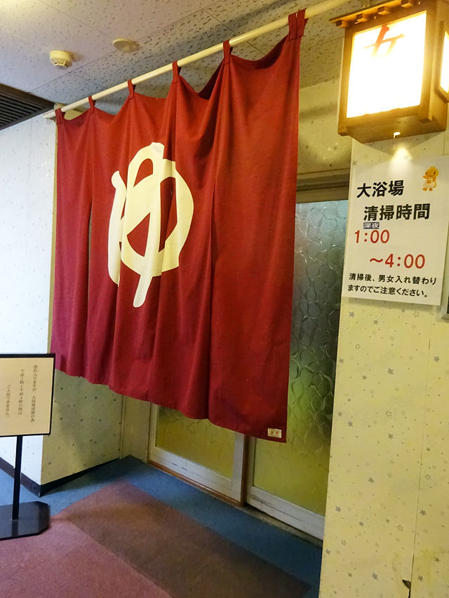 続いては温泉。男女別(当たり前か)。15時から夜1時までと、朝4時から9時まで自由に入れます。
