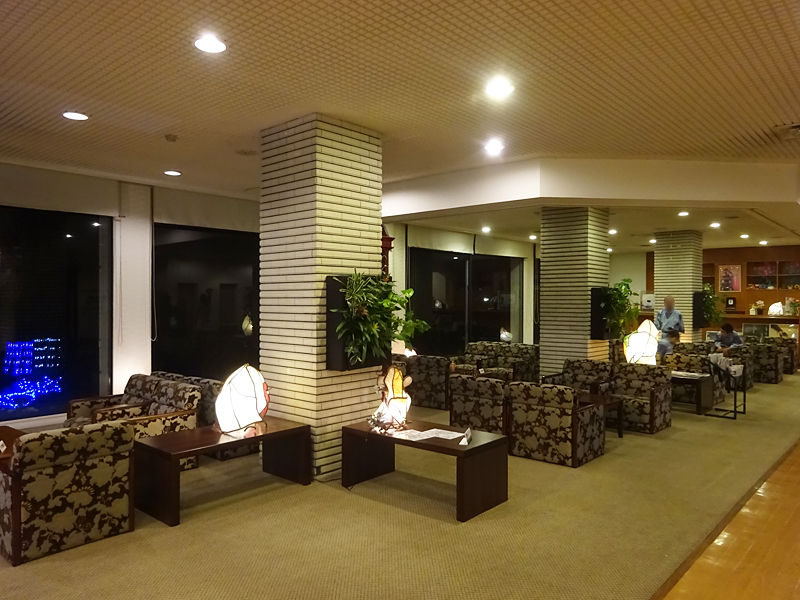 広々ロビー。自販機(ソフトドリンク、酒、アイス)や喫煙所も設けられています。