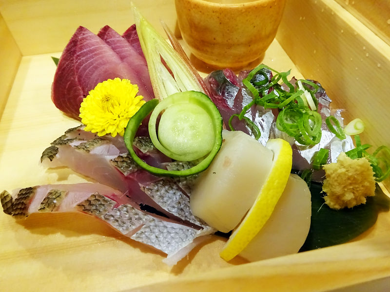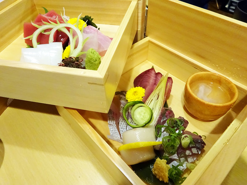 ヒノキの化粧箱 高知の鮮魚盛り合わせ¥1980
