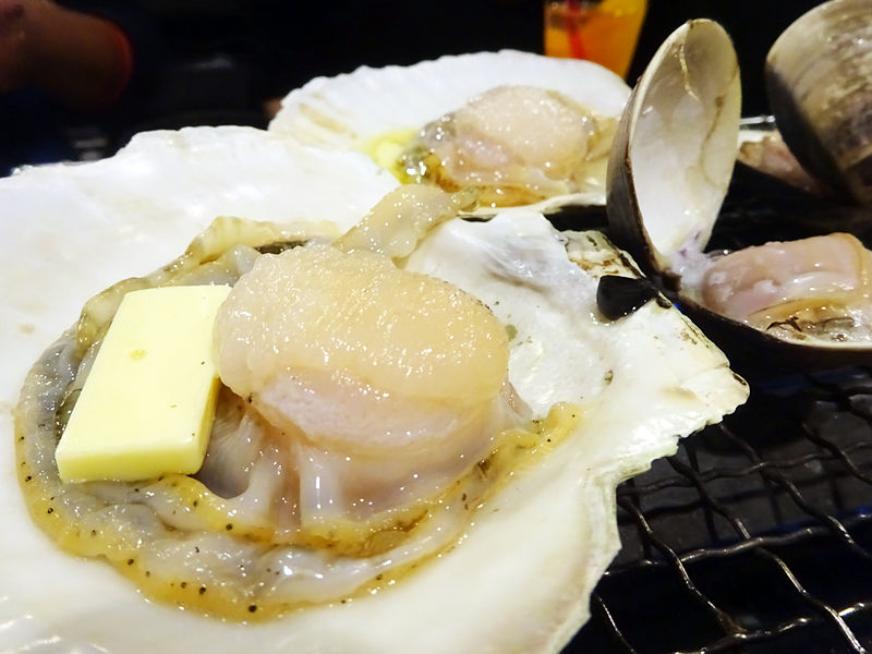 活ホタテ!バター醤油で。