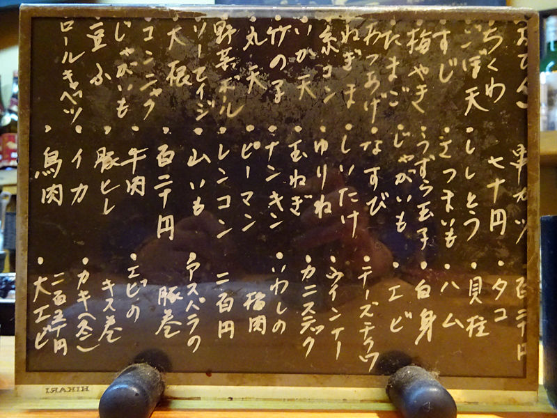 酒ひと通り、アテはおでんと串カツがメイン。その他日替わりの一品やお造りと、名物のどて焼きとシンプルラインナップ。