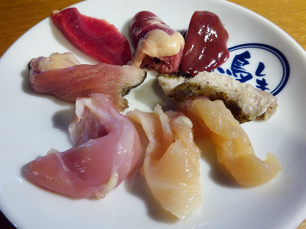 どれもほんっと新鮮!サクッとズリ、ぷりっぷりのココロ、ぷりとろっのキモ!弾力のモモ、もっちろムネ、しっとりササミ。どれもウマい!甘い!