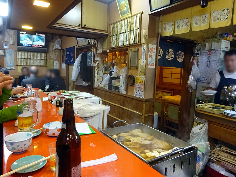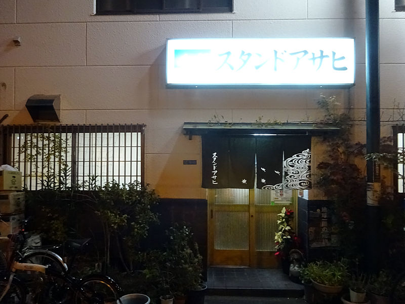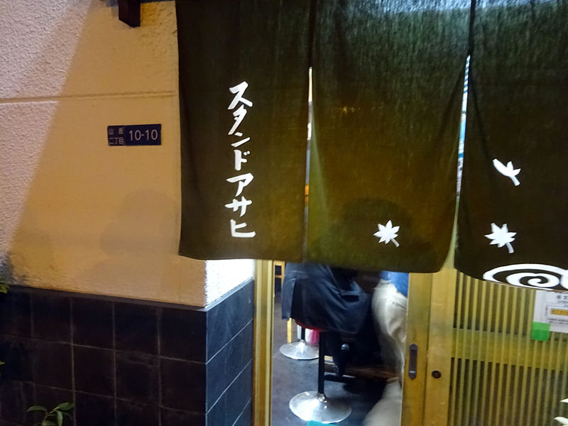 煌煌と光る看板。紺暖簾の隅に控えめに記される店名。
