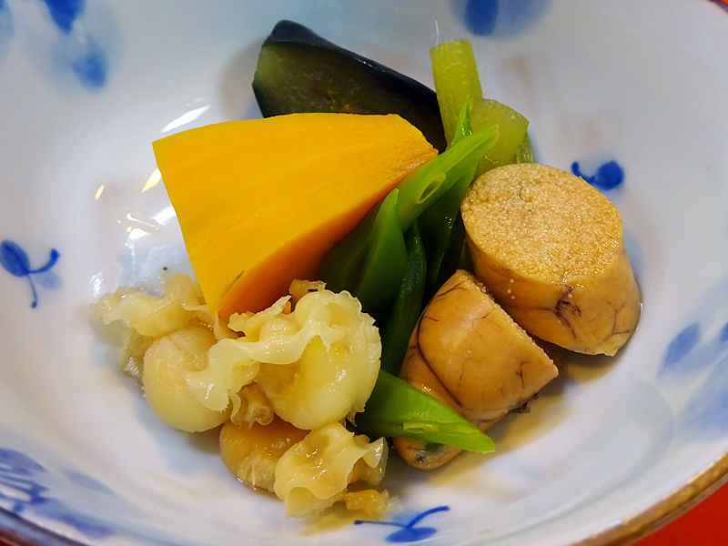 たいの子、いたや貝、南瓜、いんげん、茄子、フキ