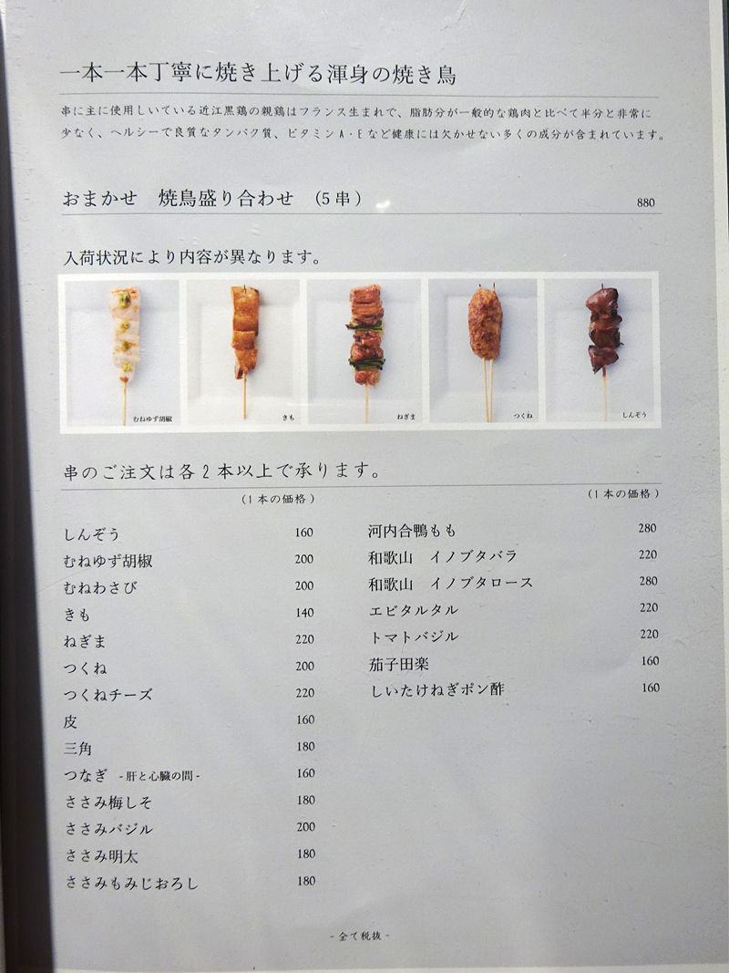 焼鳥は各2本以上からのオーダーとのことで。ひとりが食べたくても片方が食べたくないものもあるからね〜無難に盛り合わせで。