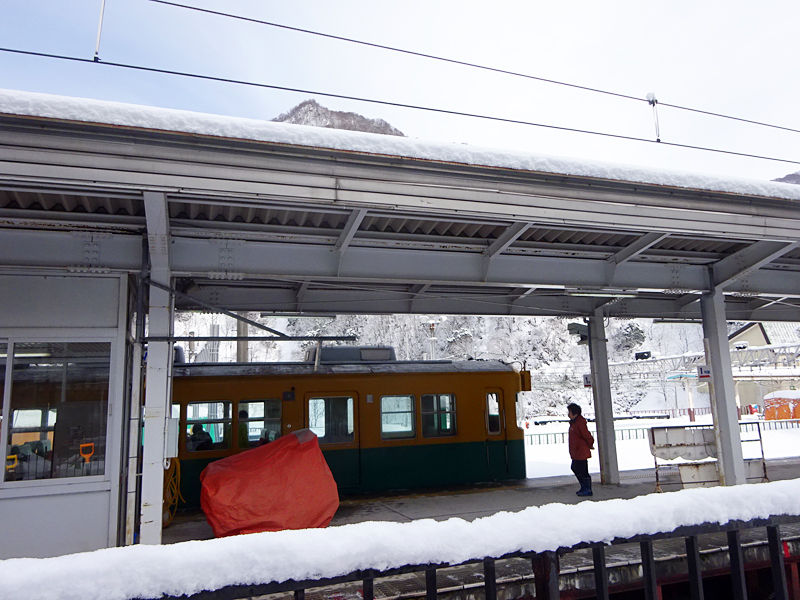 ちょうど電車来た!こんな雪の中でもちゃんと走ってるのね!