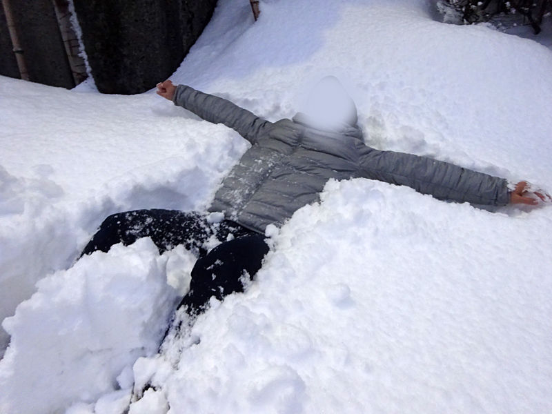 たっぷり積もった雪に埋もれることも可能です!しっかり跡もできた。翌日まで残っていました(笑)