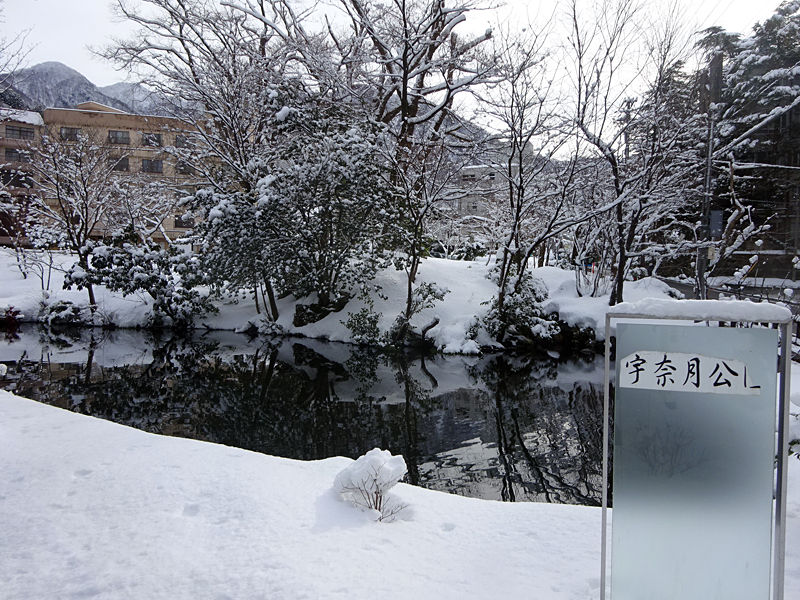 宇奈月温泉は、黒部峡谷黒薙温泉から引かれていて、この温泉噴水でも、60度にもなるその湯の湯けむりがあがっています。寒い街歩きの途中、暖を取るのにも助かりました。