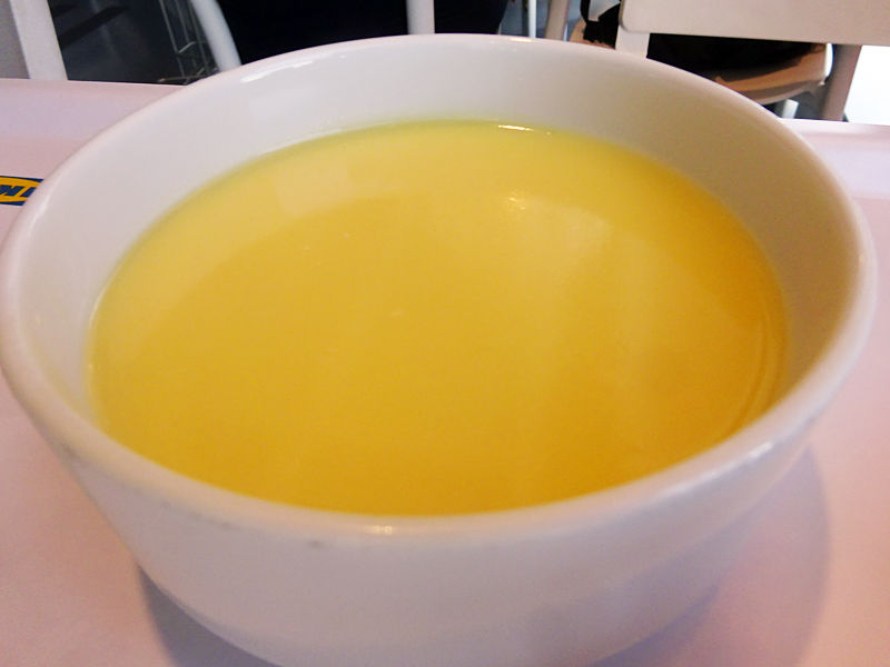 コーンの粒もザラッとした感もない、汁だけのスープ。でもまぁ美味しい。運んでる間に冷めてしまうので、その場合はレンジもある。