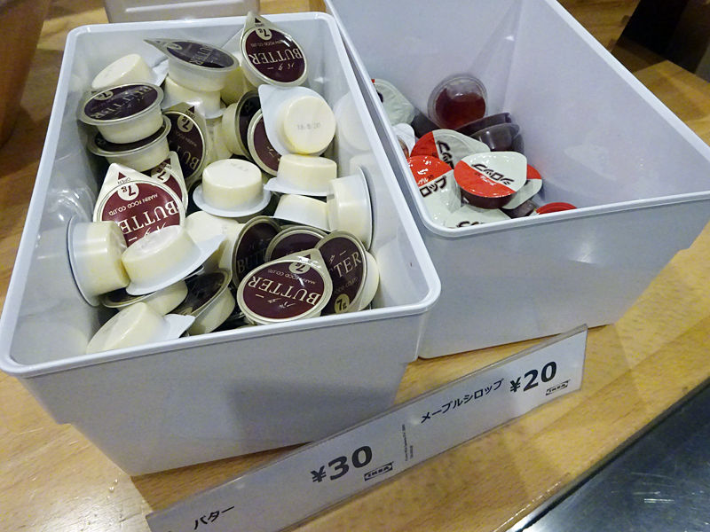 バターやメープルシロップもタダではありません。これを見ると、ビュッフェの取り放題って何て贅沢なんだろうと思いますね。