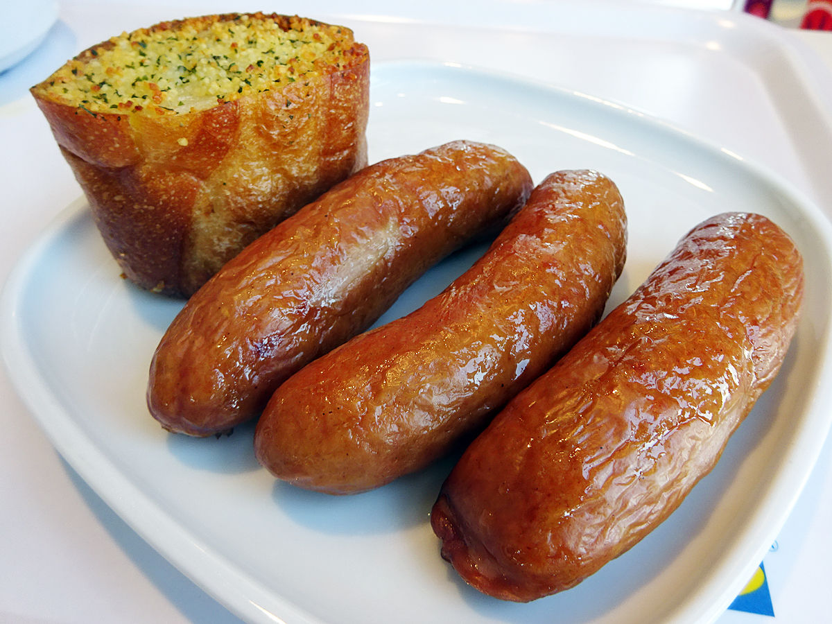 ガーリックトースト¥129、ソーセージ¥120/1本
