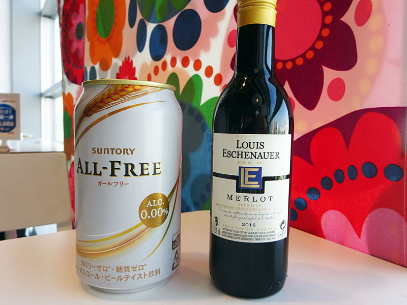 私は赤ワイン¥359、ドライバーさんはノンアルビール¥??で。白ワインやどこぞの国のビールもありますよ。