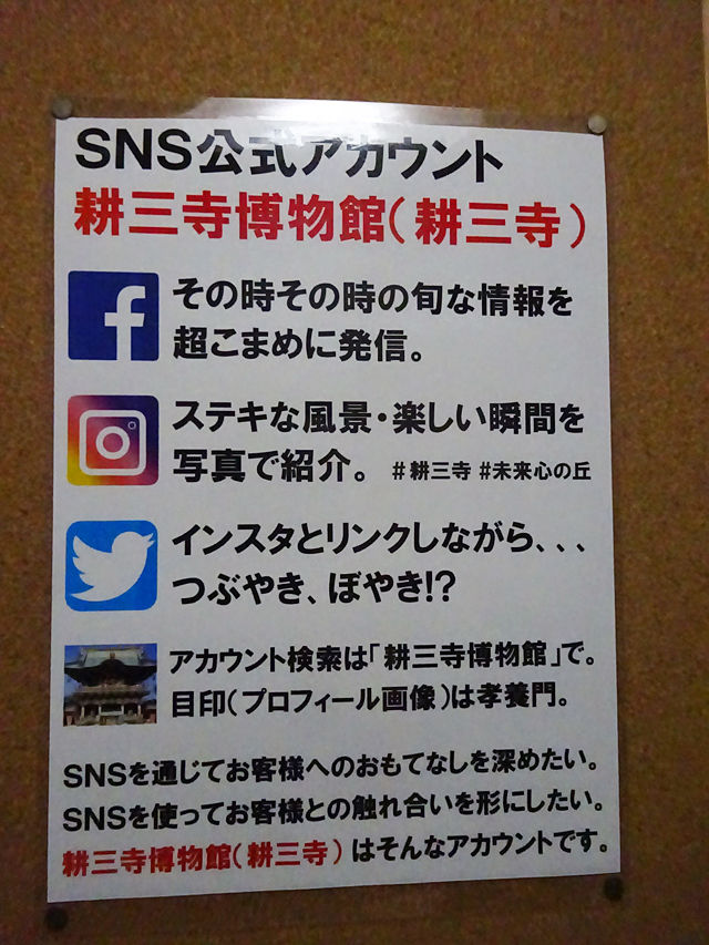 そのエレベーターの中の掲示。SNSのアカウントまである。
