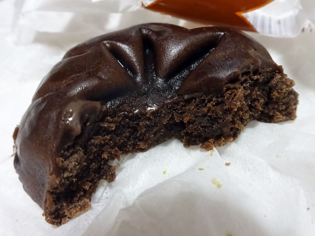 すごく小さめサイズ。チョコとこしあんをめちゃミックスした、ケーキなのかチョコ餡なのか?という生地に、さらにチョココーティングしてあって、全体的にめちゃチョコ度高い!こりゃ洋風だわな〜と思ったら、やっぱり和かな?!みたいな。おもしろい。美味しい。