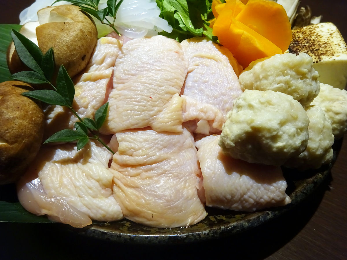 出汁の甘辛加減も程よく。煮詰まってきても野菜から水分がてきてちょうど。で、メインのコーチン。大きめブツ切り!皮ブリッで身むっちり弾力!でいて、噛み切れるやわらかさ。鶏すきって言うと、大体削ぎ切りみたいな肉片ってことが多いけど、コレは食べ応えあるわ〜美味しい。途中、一味をもらって味変しながら完食!シメはお楽しみに…