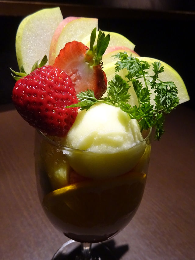 柚子シャーベットだけど、脇役スゲー!たっぷりフルーツに、底には生クリームも入っててパフェ感覚!インスタ映えか(笑)