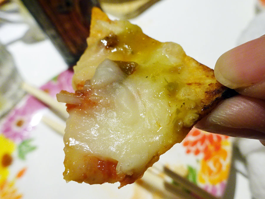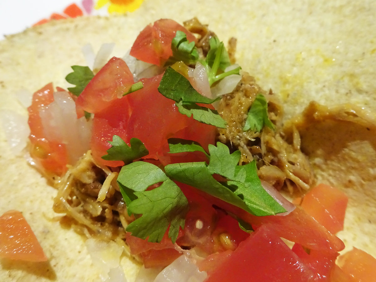 まずは皮。トウモロコシの粉が原料のタコストルティーヤ生地。独特の香りがたまらなひーっ!しなやかで、でも粉のプツッザラッとした舌触りも残る、独特な食感。生地だけでも美味しい!