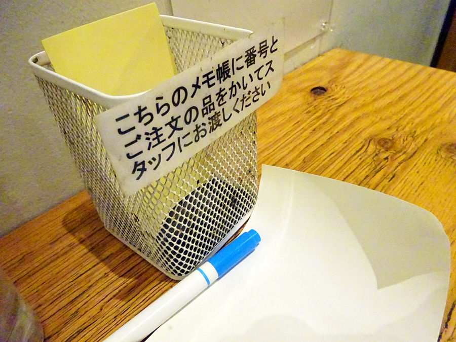 オーダーは手元の用紙に記入してスタッフさんに渡すセルフスタイルです。