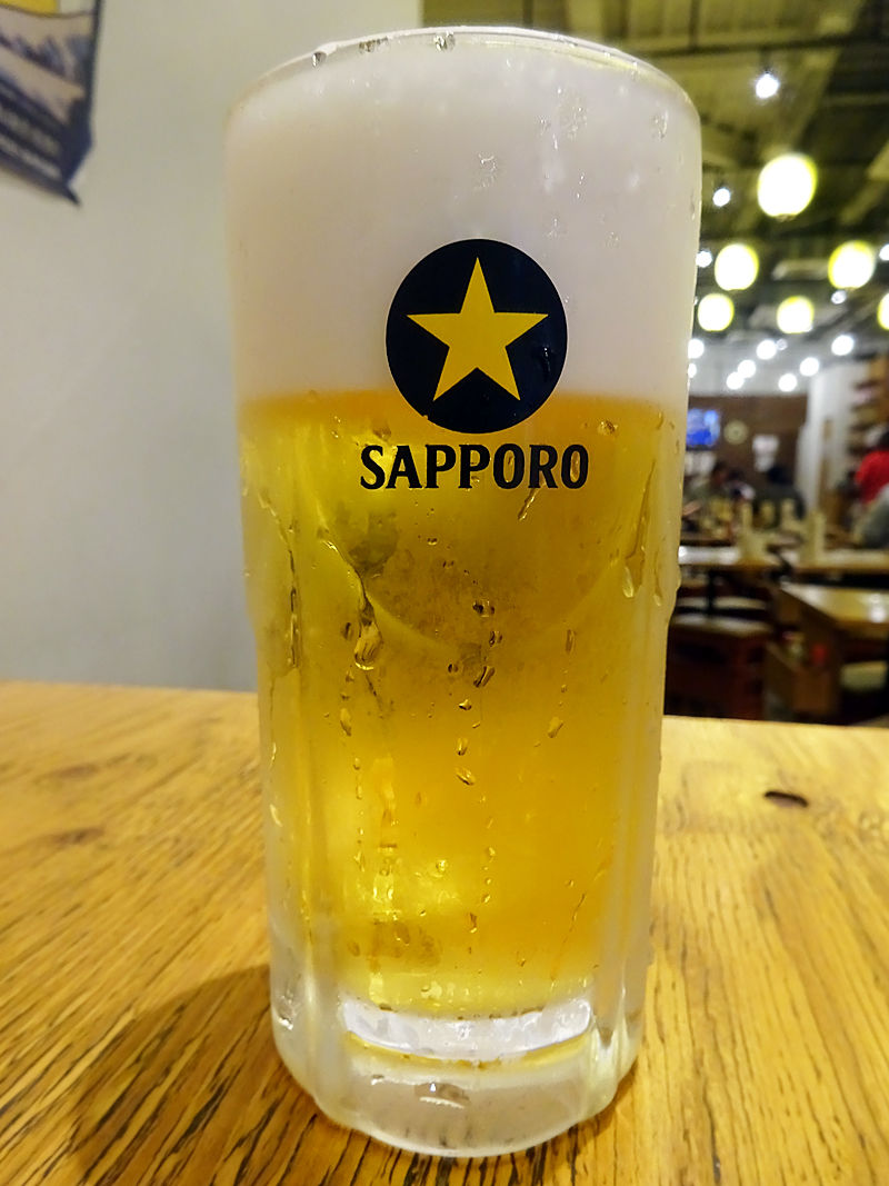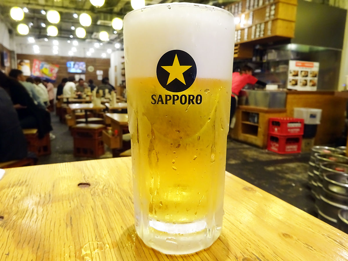 とりBで乾杯!発泡酒ちゃうよ、ちゃんとビール。サッポロ黒ラベル!泡もクリーミィで合格!