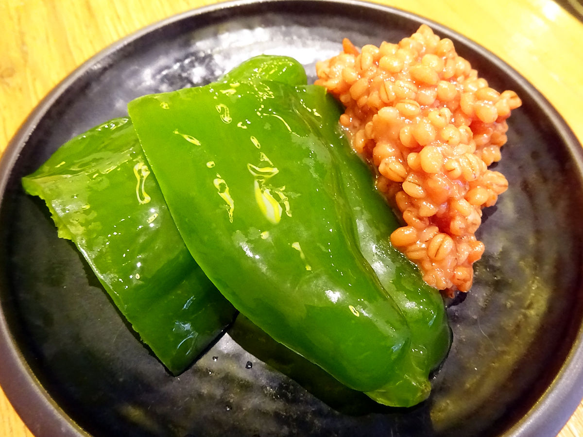 半切りのピーマン1個にもろみ味噌。至ってシンプル。