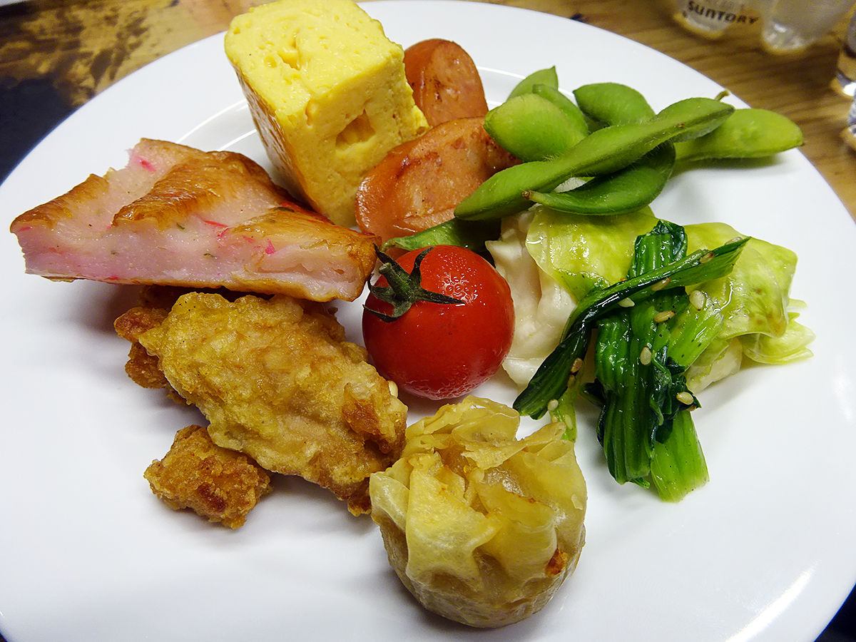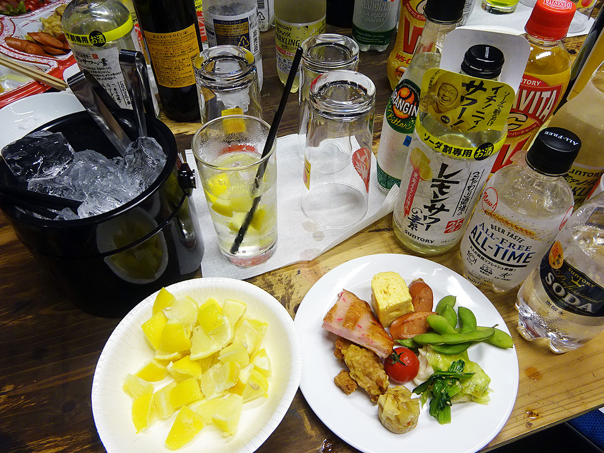 家飲み風に、この日のおつまみも調達してきた品々。定番の枝豆やら卵焼き、揚げ焼売とか合うよね〜チャチャっと手作りも良いけど、こーゆう出来合いもんでベタに飲るのもたまにはアリ!