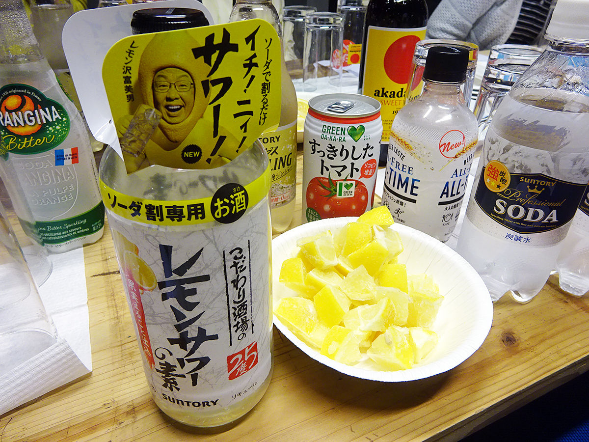 たっぷりの氷に、レモンサワーの素:ソーダ=1:3の割合で注ぐだけ!酔っ払ってても作れる!(笑)