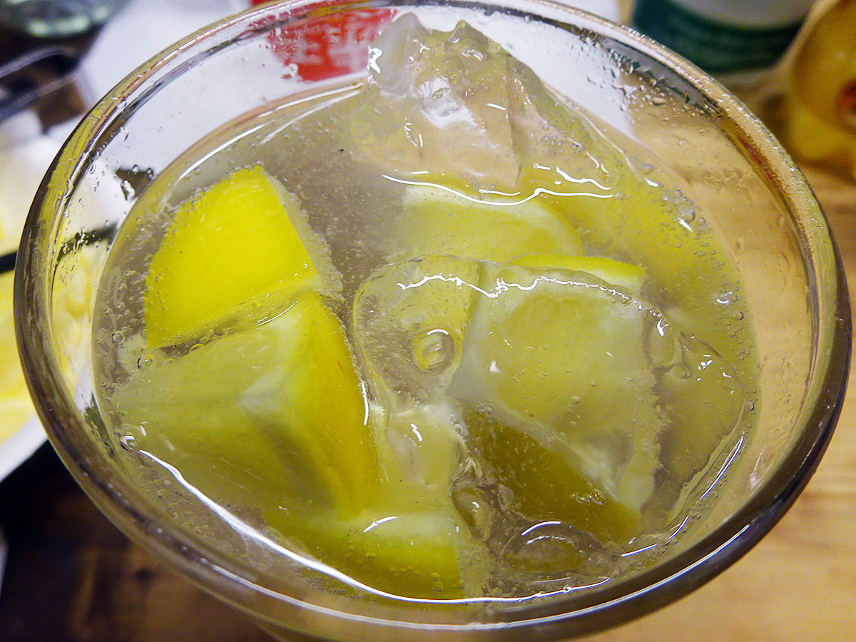 強炭酸でシュワシュワ爽快!氷じゃないので最後まで薄まらず、爽やかなレモンがずっと続くのも良い!これは、ちょっと頑張って?用意した方がいいね、うん。