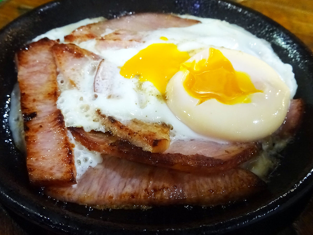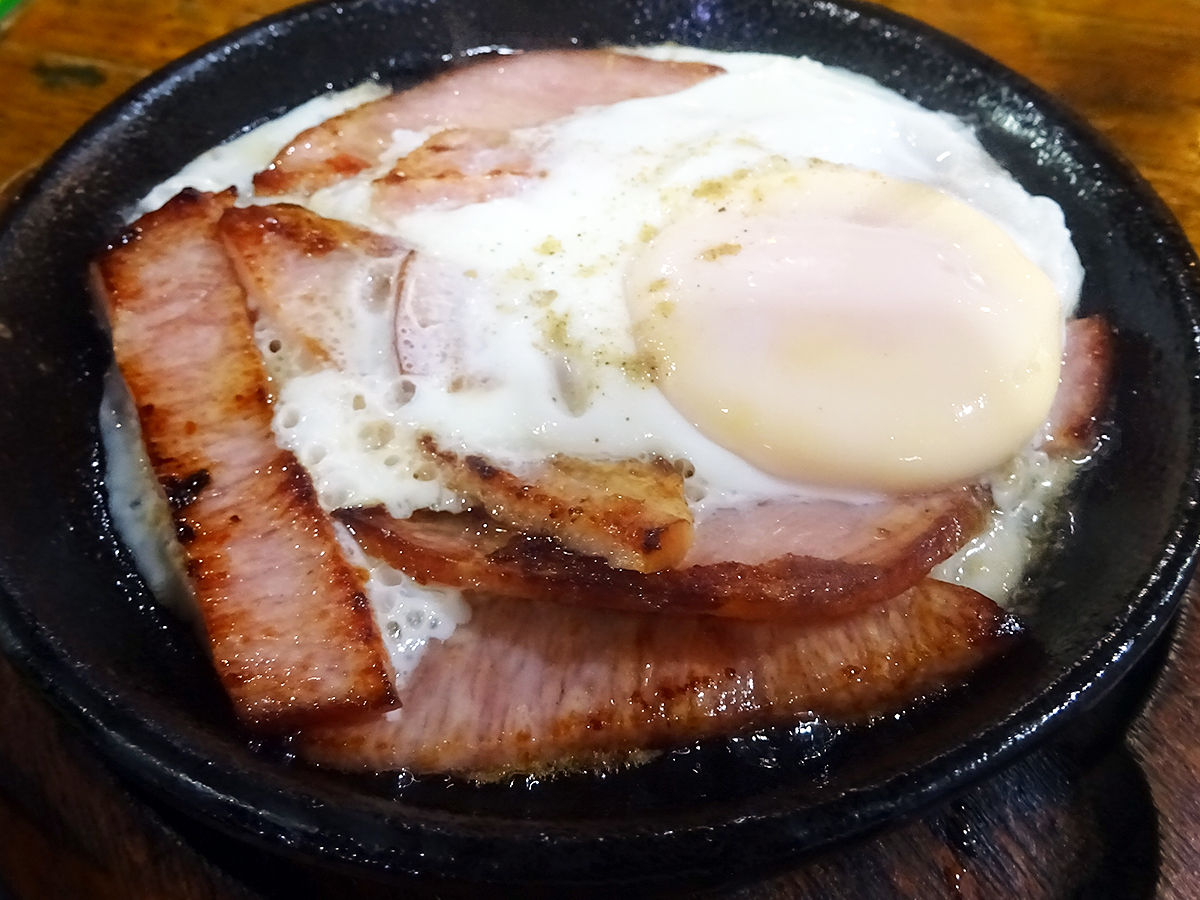 超ハムカツと悩んでハムエッグに。『超』の所以は、ハムぎっしり!なのね!