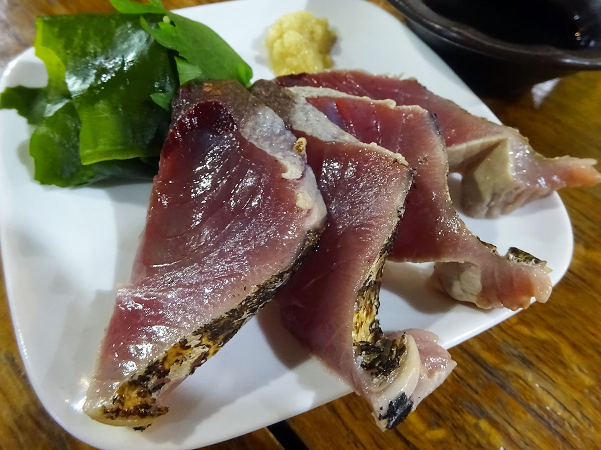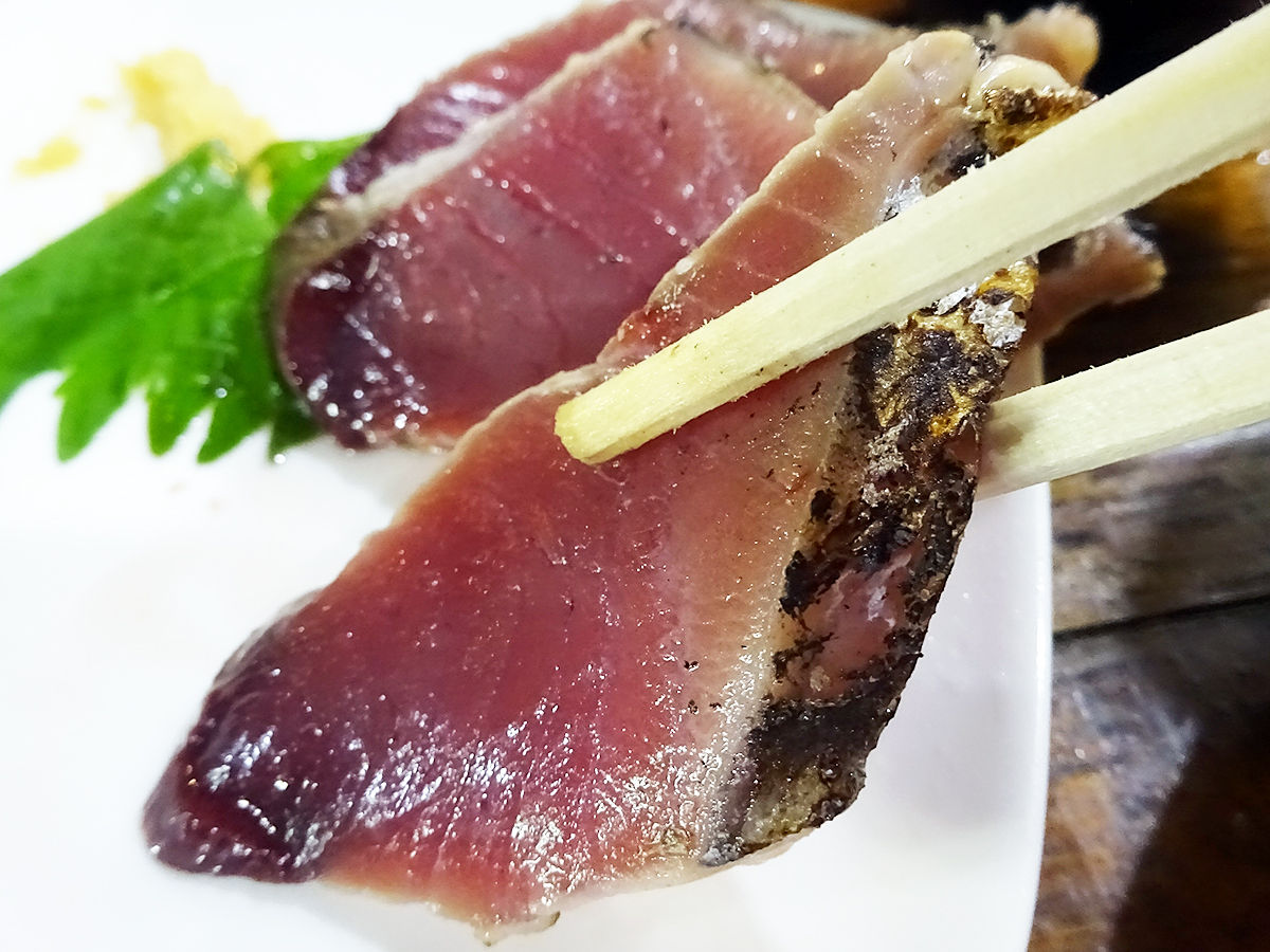 皮面はタタキ感ありつつ中は超レアのお刺身タイプ。これ好き!