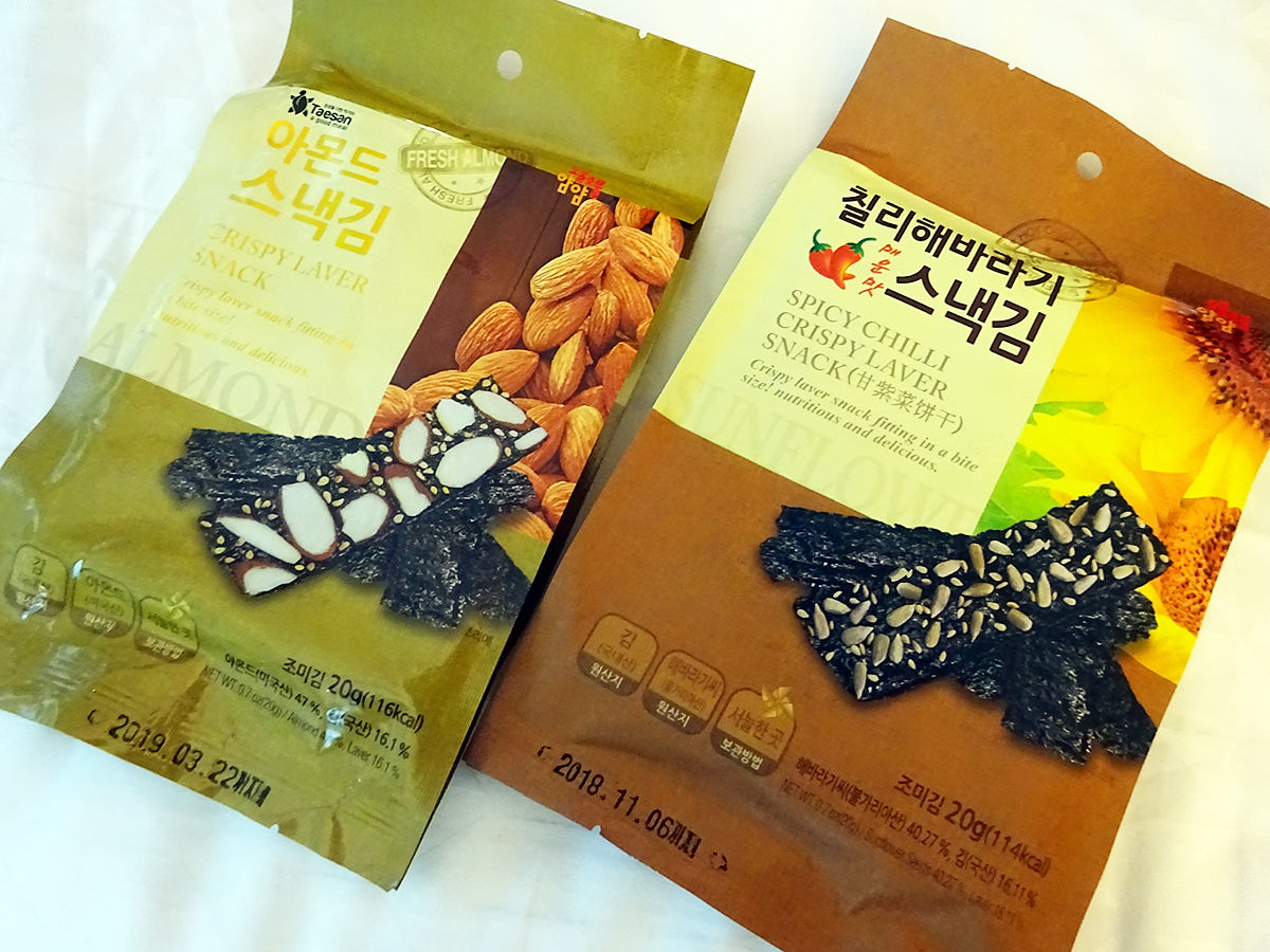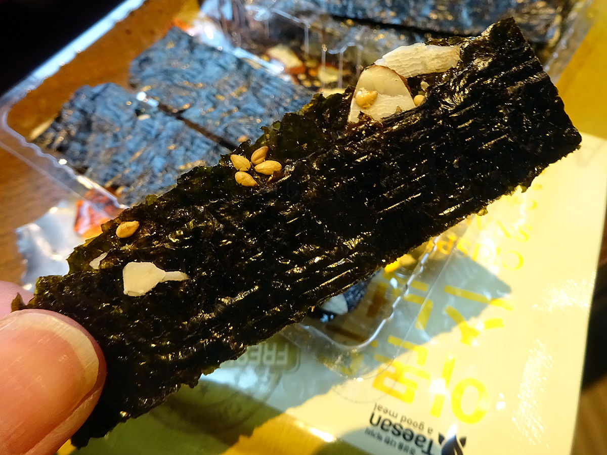 パリパリとナッツのカリコリ食感と風味が合う!ひと袋¥270くらいでちょっとリッチな韓国海苔。韓国土産=韓国海苔だけど、コレはもらったら嬉しい!もっと買えばよかった〜