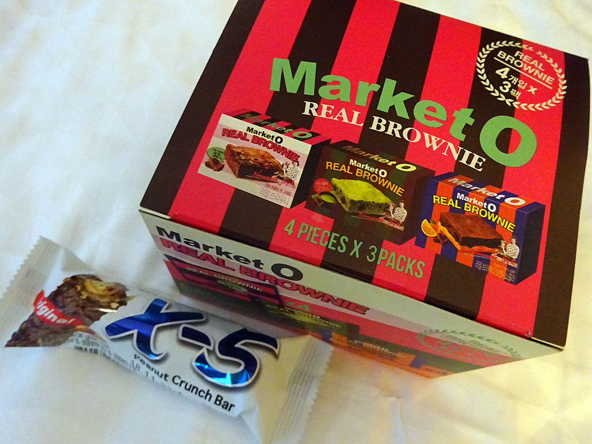 ↑一緒に写ってるのは、ピーナッツバターみたいなのが入ったチョコク↑ランチのバー菓子。こーゆうのも種類が色々あって、コンパクトで軽いからバラ巻き土産にもぴったり。