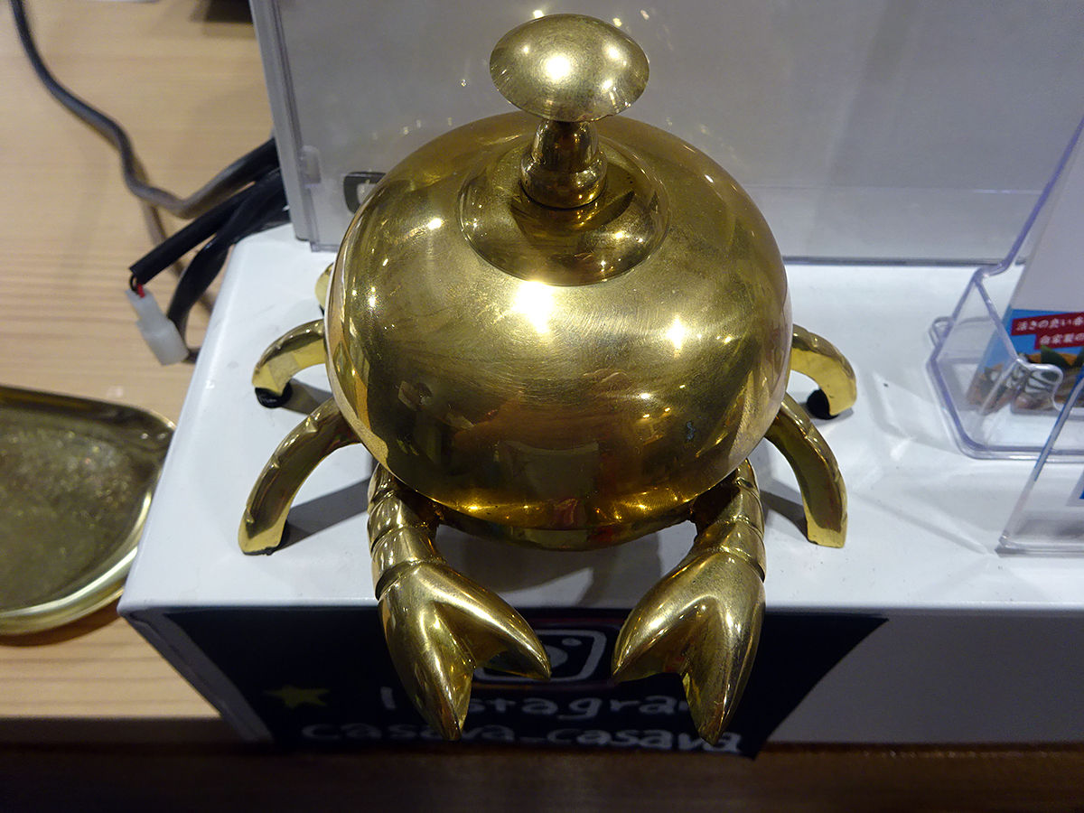 これは日本酒いただきましょか。カニの呼び鈴でチーン!まぁ小さいお店だから鳴らさんでもえぇけど(笑)