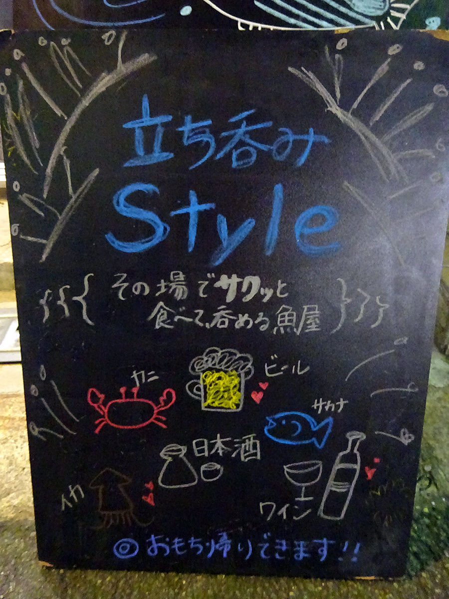 こちらでは、カニや魚たちを販売しつつ、店内で立ち飲みができちゃうという面白いスタイル!酒屋の立ち飲み=角打ちの魚屋さんバージョンってとこかしら!?