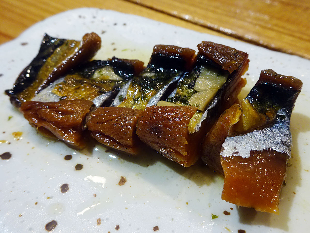 あぁ、コレもサイコーにおいしい。オリーブオイル漬けだからノーマルなへしこより俄然やわらかでぽってりしてるの。