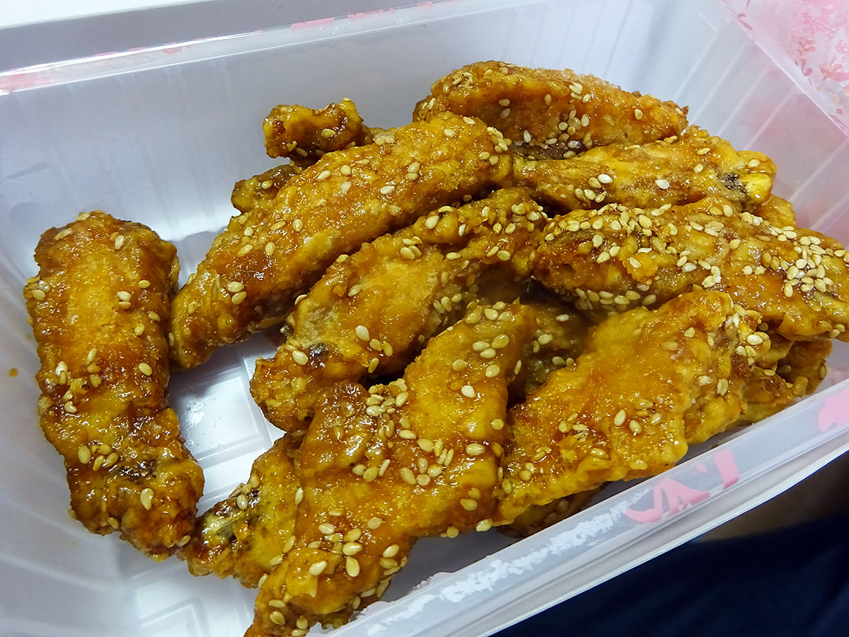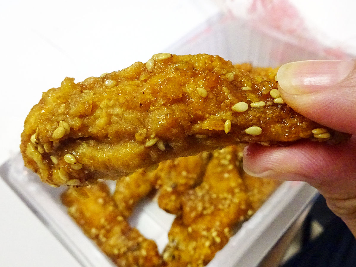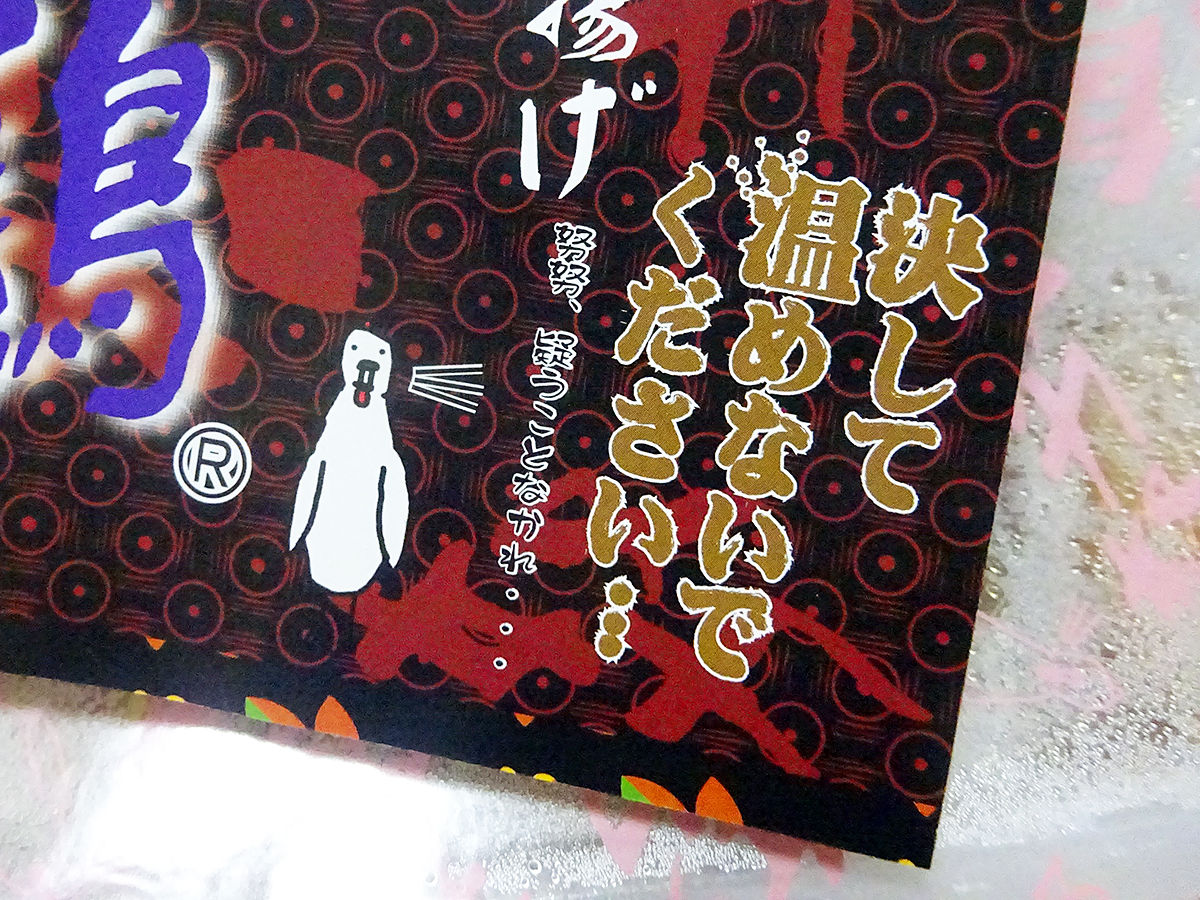 冷たいそれ。むぎゅっとしてちょっとジュワッと。まぁいわゆる手羽唐揚げの味なのだけど。熱々のそれより味がしっかり甘辛が染み込んでいる感じで、でも油っぽさが少ない感じ?揚げたんを冷凍してちょっと解凍させて食べたらこんなんやろな、って感じ(笑)初めて食べて「めちゃくちゃウマイ!」というのではなく、食べ続けると「なんかハマるよね〜」的な。地味にウマイやつ(笑)いや、ビールにお供に最適でした!