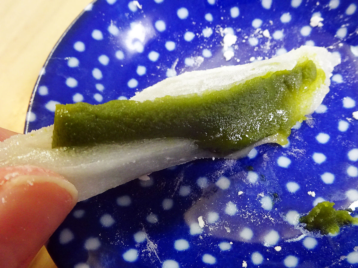 求肥がめちゃもちーっ!やわ!やわもち!で、たっぷり包まれた本玉露の苦味と、合わさるカスタードのまろやかさが絶妙!めちゃくちゃおいしいー!!!(♡∀♡)ちょっと高いかな〜と思ったけどwその価値大!