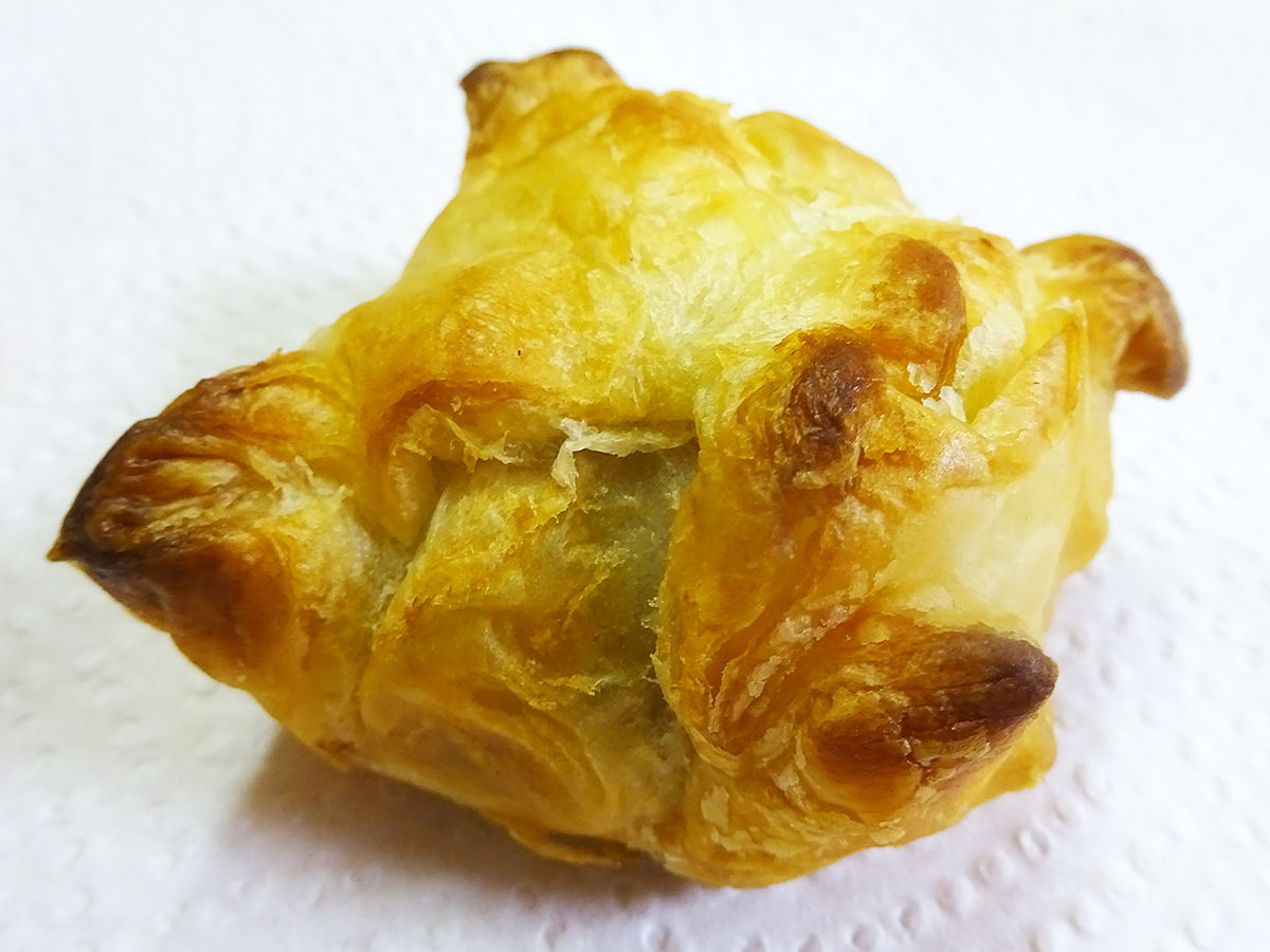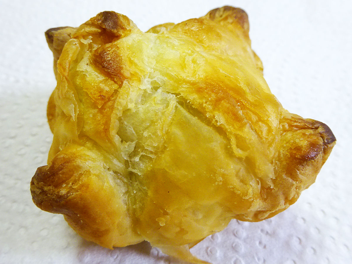 ちょっぴりサクッとしてしっとりして、みずみずしさもある粒あんにもっちり求肥。まぁ割とあちこちにありそうだけど(爆)発酵バター使用のパイ生地の甘み香ばしさも良く、全体のバランスも整ってる。餡もぎっしりでひとつで食べ応えあります。コーヒーにも緑茶にも。和洋折衷な一品。
