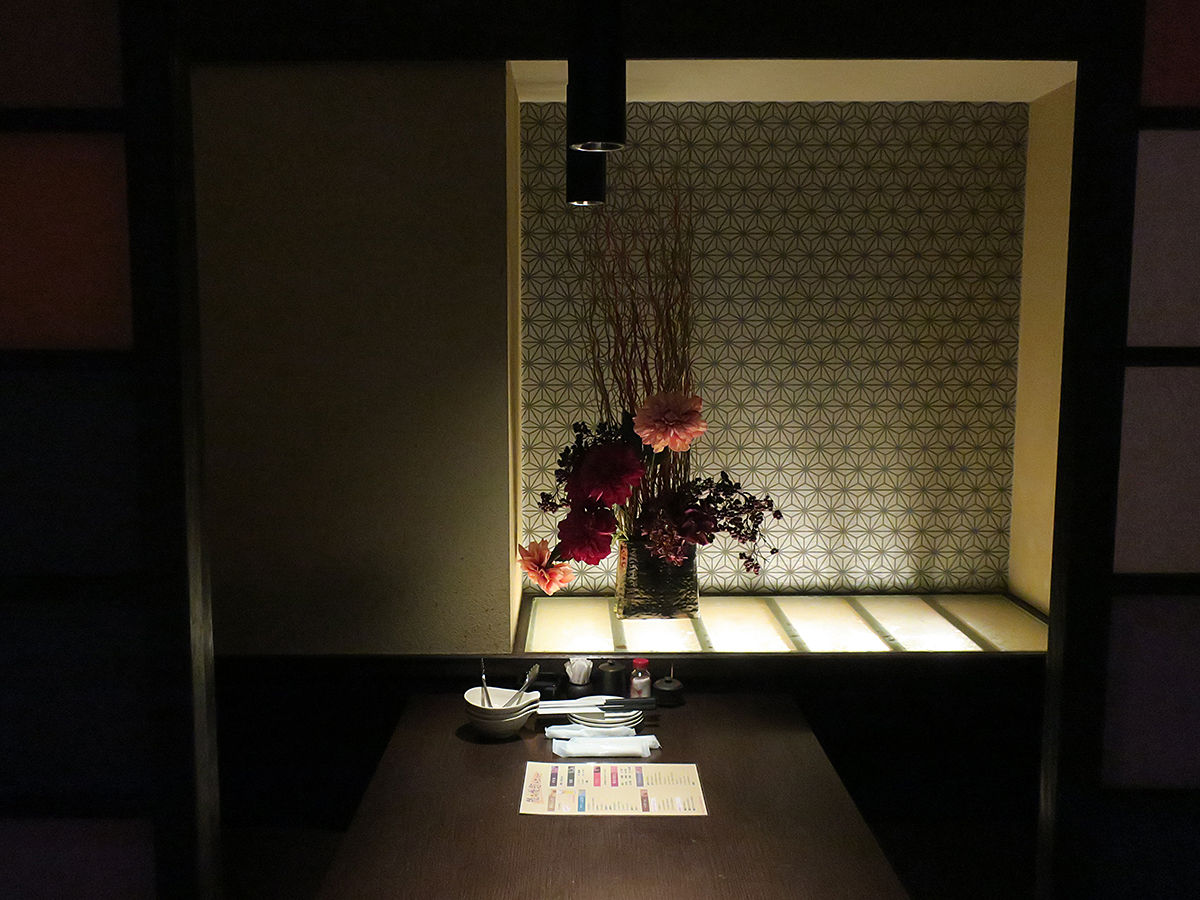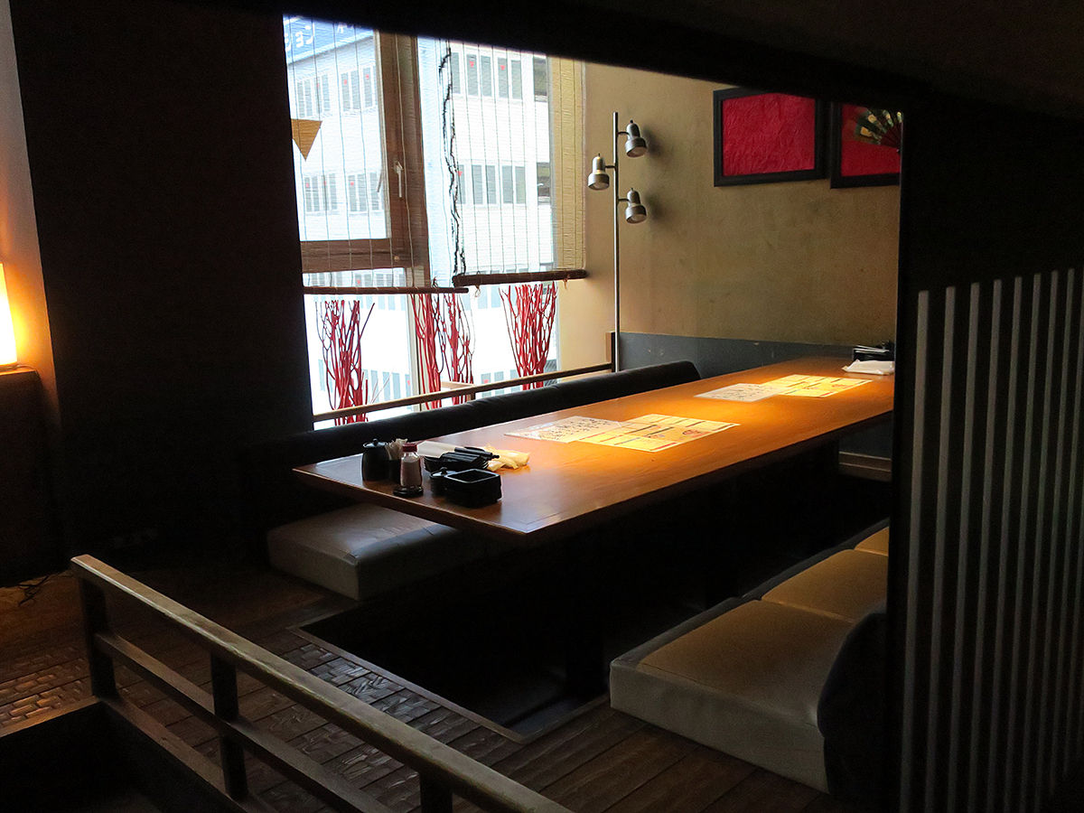 丸テーブルの掘りごたつ個室!めっちゃステキー!ほんまにテンション上がる!この時点で既に再訪を決めちゃいそう(笑)