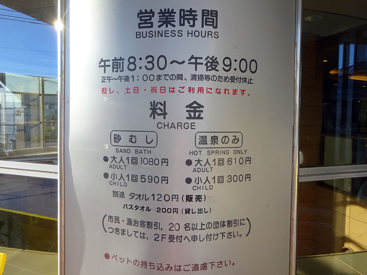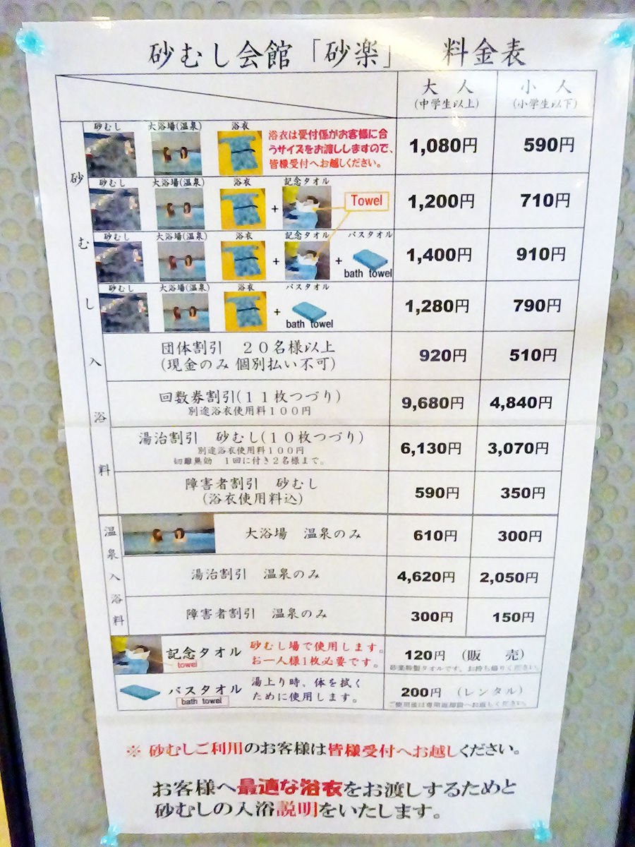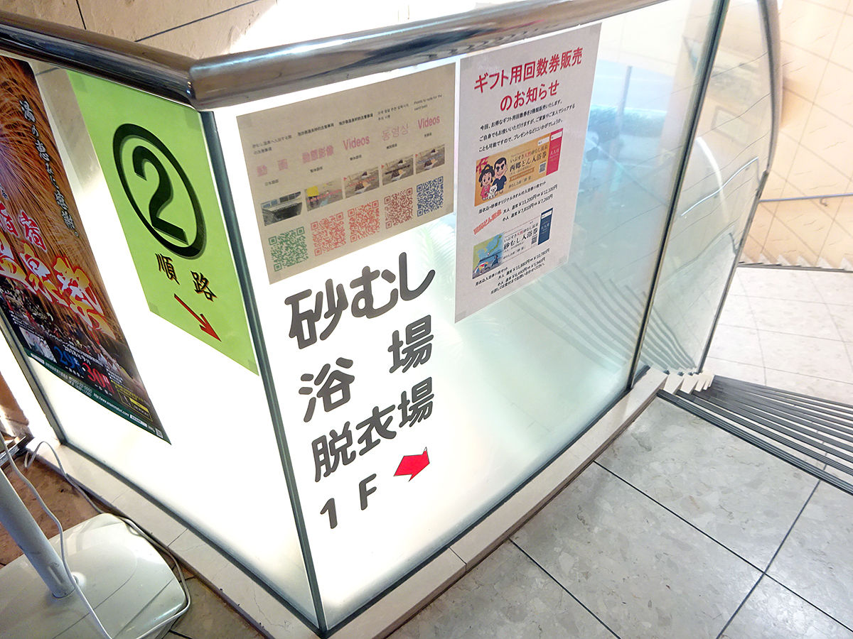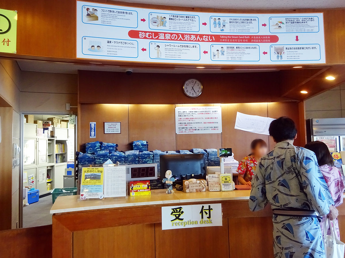 むし時間は汗が出てくる10分ほどがちょうどらしく、そこいらに掛けられる時計を見て自己判断を。そろそろやな〜と思ったら、よっこらしょ!と気合いで砂から抜け出して終了。